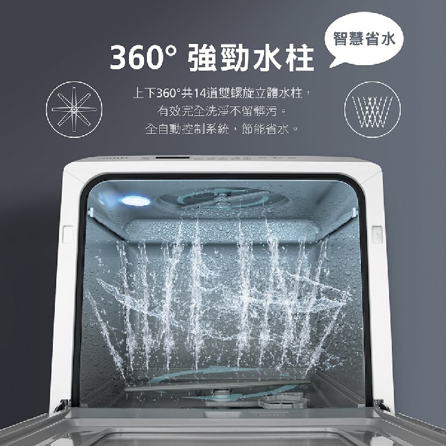 ‧【上下噴臂 立體強勁水柱】360度全區域洗淨