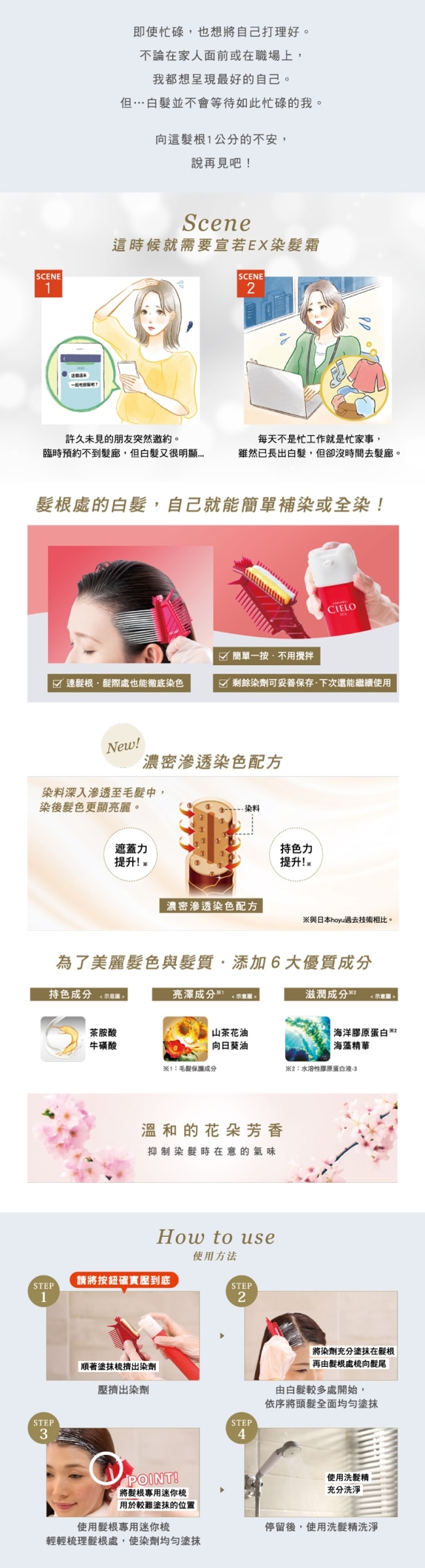 氣味不刺鼻用溫和的花朵香氣趕走染髮時的惱人氣味