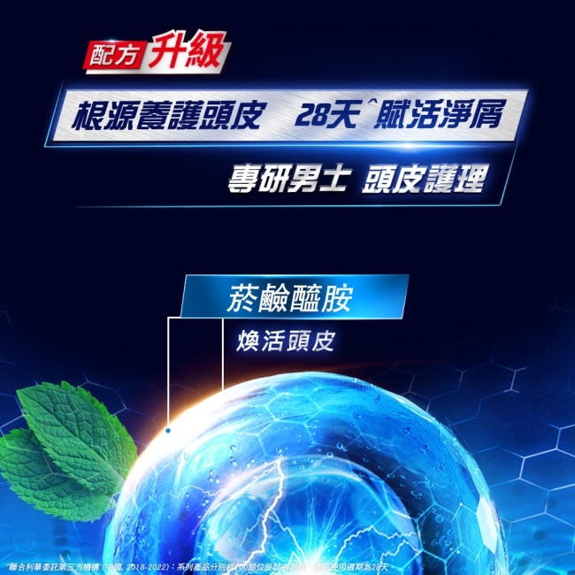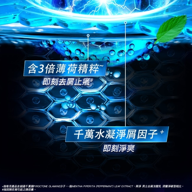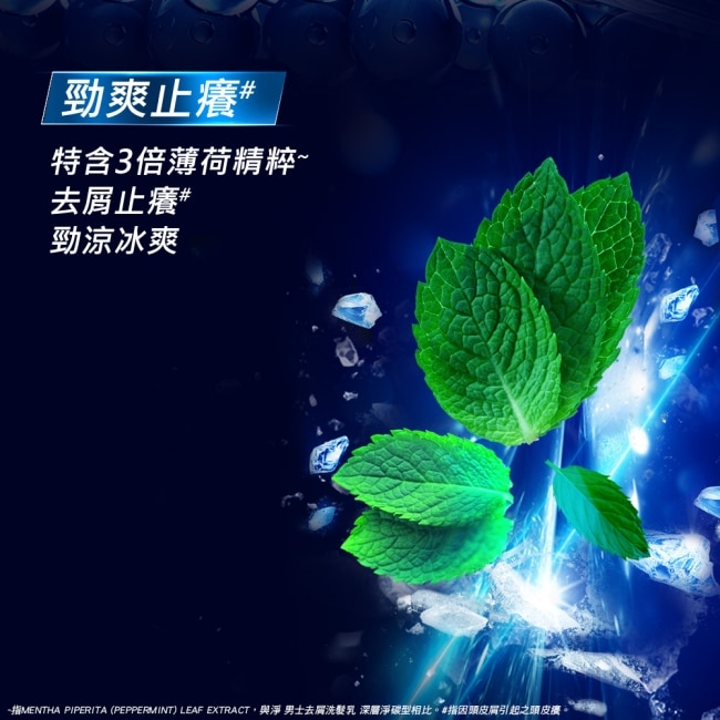 添加3倍薄荷精粹去屑止癢、勁涼冰爽