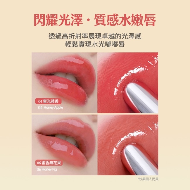 透過高折射率展現卓越的光澤感輕鬆實現水光嘟嘟唇。