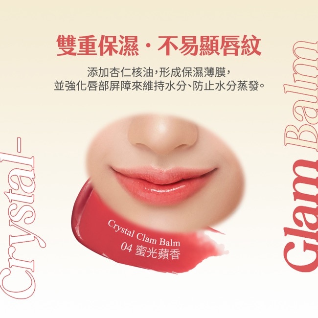 添加杏仁核油形成保濕薄膜強化唇部屏障來維持水分、防止水分蒸發並使唇部柔軟不易脫皮。