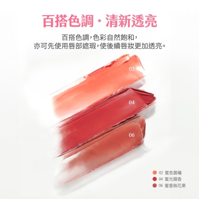 | 商品簡述 | 絲滑地融入雙唇的蜂蜜光澤雙重保濕、水亮妝感一抹打造質感水嫩唇。 |