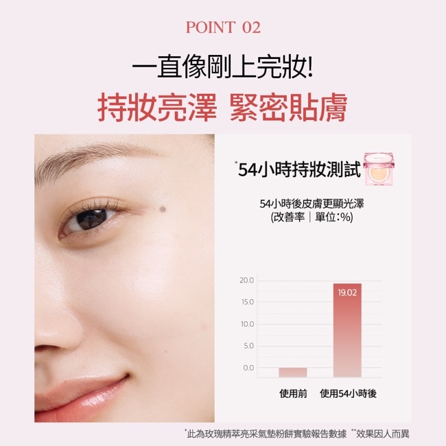 | 商品簡述 | 小廢包神器一拍完成細緻遮瑕x 54H持妝亮澤隨身打造天生水光肌 |