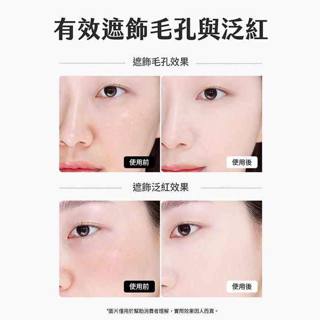 採用均勻粉體結合技術搭配全新羽感貼膚粉體能有效遮飾粗大毛孔及瑕疵並使妝感如同空氣般輕盈服貼就像第二層肌膚一樣舒適自在。同時平衡控油及保濕成分使妝容不易浮粉、結塊。