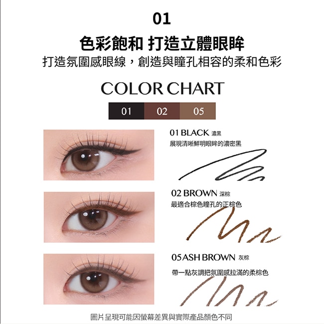 與瞳孔相容的柔和色彩一筆完成精緻眼線打造立體眼眸。