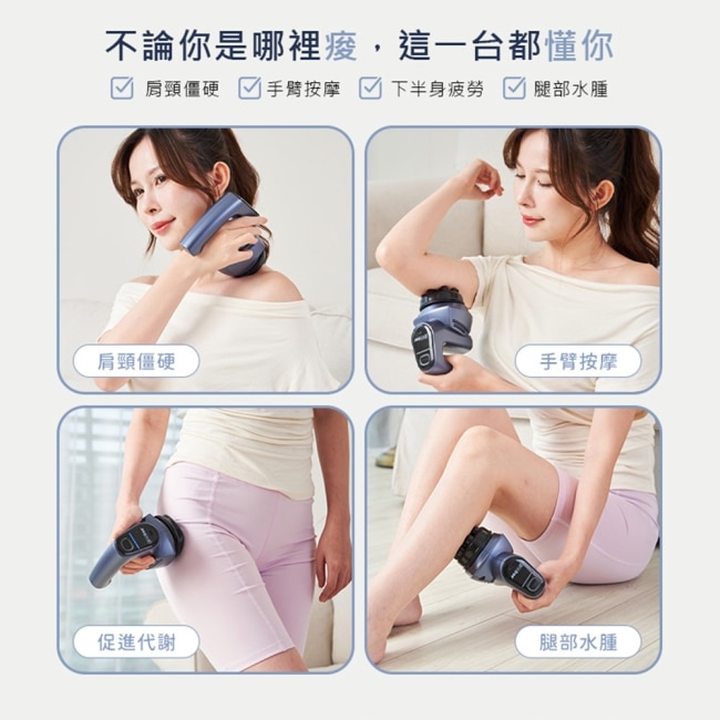 | 商品簡述 | 無線充電650g超輕量機身三款按摩頭配件可更換針對各部位深層放鬆 |