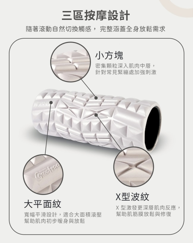Comefree 肌筋膜按摩紓緩滾筒-中 月光灰