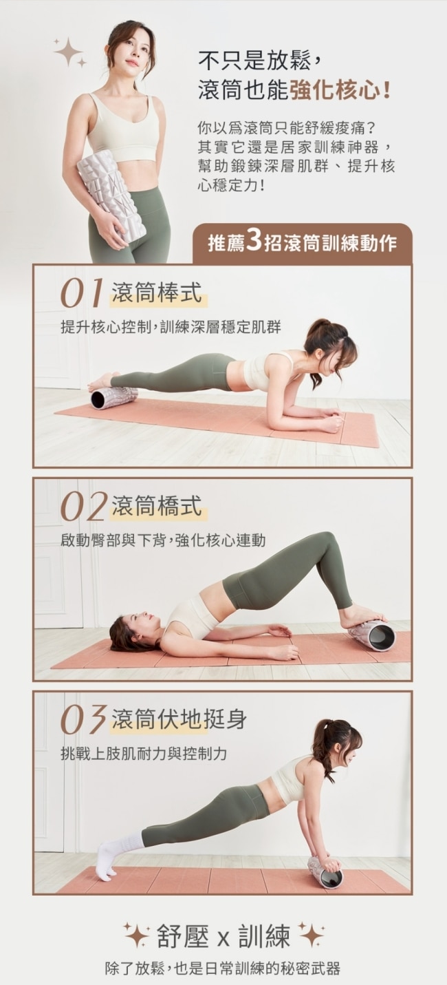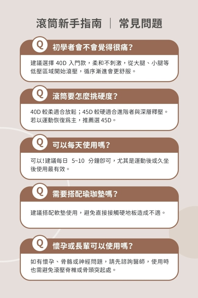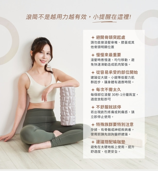 適中硬度40D適用靜態運動族群例:瑜珈、皮拉提斯等運動後的伸展放鬆