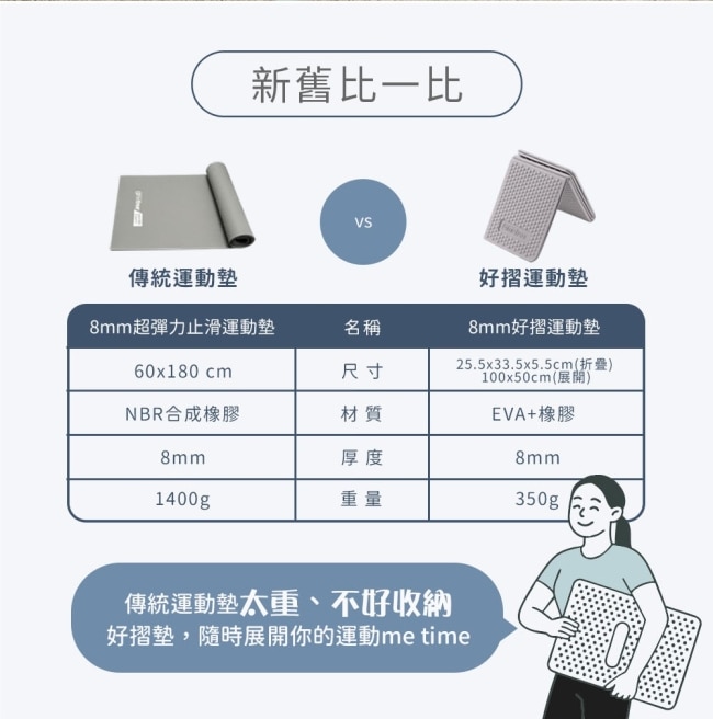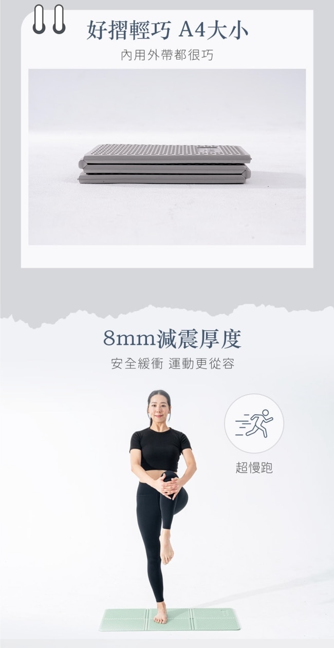 可任意摺疊所需尺寸適用各類運動防撞緩衝、如超慢跑、跳繩、體操等。