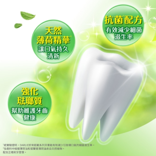 2. 含天然薄荷精華(1)配方有效減少引致壞口氣的細菌滋生率潔淨牙齒持久清新好口氣