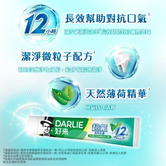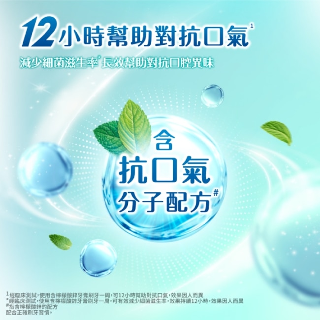 3. 幫助抗口氣分子配方(2)12 小時減少細菌滋生率(3) 長效幫助對抗口腔異味。