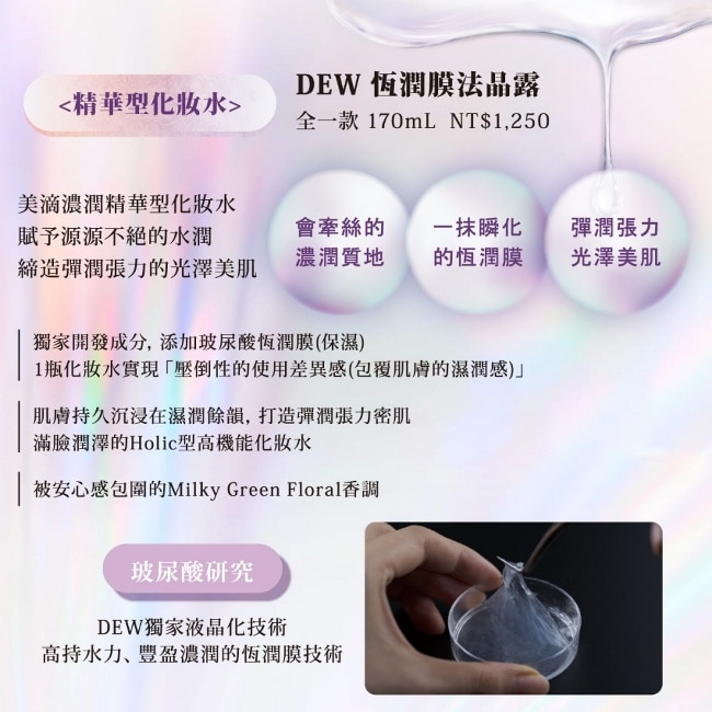 | 規格 | DEW 恆潤膜法晶露 170ml |