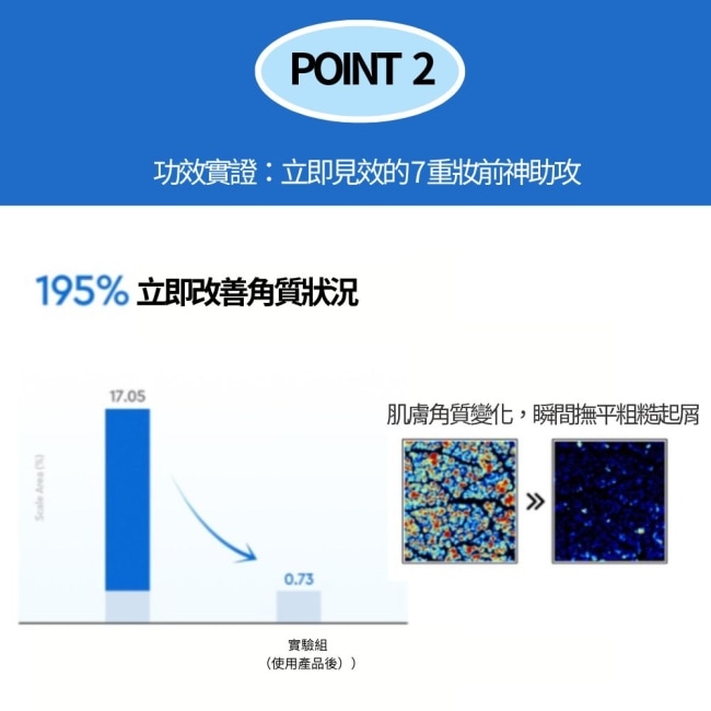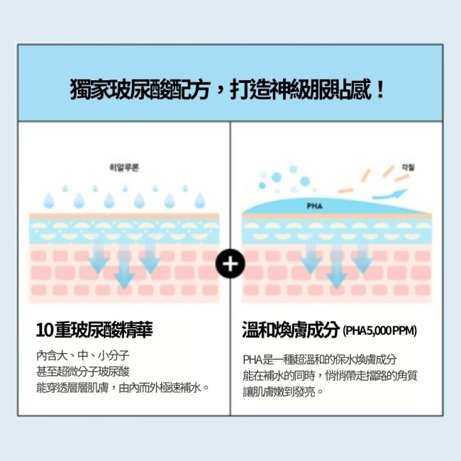 選用純素認證的大尺寸3層高服貼布膜能乘載更多精華液,多裁型設計可依肌膚護理部位拆分,無論大面積臉頰、脖子,小面積鼻翼、法令紋、眼下等細節處都能完美兼顧。添加多重玻尿酸、PHA與清涼舒緩精粹,1片7大功效達到補水、降溫、溫和去角質、水光提亮、改善膚質、加強妝容服貼度、持久度。快速調理肌膚狀態呈現水嫩細緻,是打造完美妝容前的必備保養。