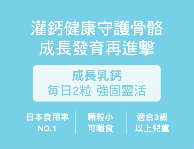 | 商品簡述 | 採用富含鈣質且吸收力較高的牛奶鈣所製成可維持孩童正常生長及發育守護骨骼及牙齒健康。 |
