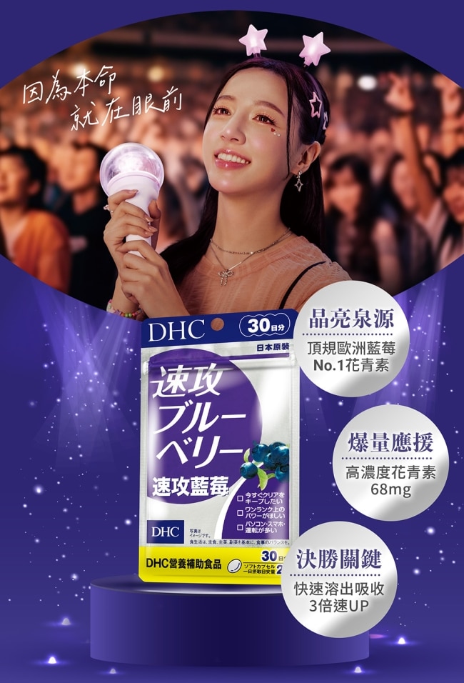現代人長時間長時間使用3C產品用眼壓力過大甚至影響生活作息需要演唱會來調劑生活。速攻藍莓專為用眼過度族群設計溶出速度約3倍見效更快