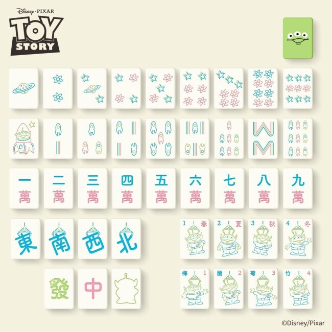 正面 外星風麻將數字面 : 每張牌都保留傳統麻將的經典元素,搭配可愛的三眼怪插圖每次摸牌都有驚喜感,超萌超療癒