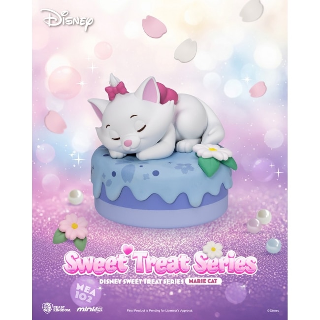 瑪麗貓 (Marie)戴著粉紅蝴蝶結的小公主,睡姿優雅趴在藍色蛋糕上,甜美又迷人。