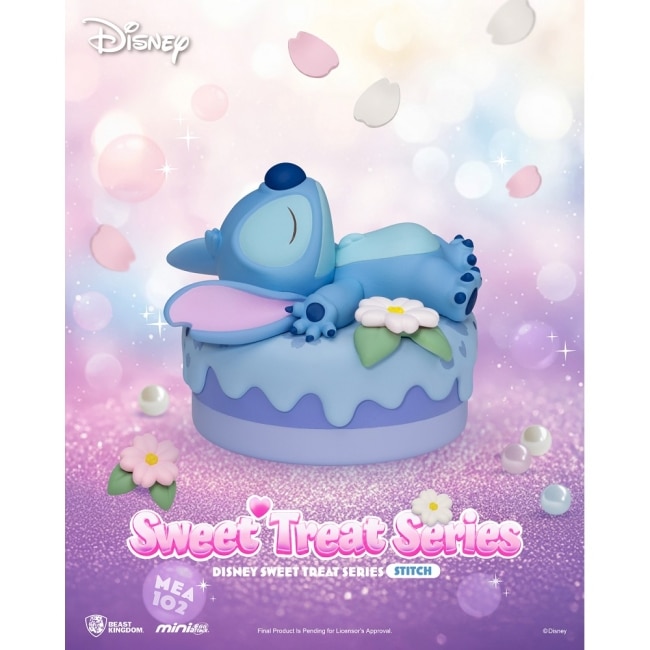 史迪奇 (Stitch)調皮的藍色外星人難得安靜熟睡,四肢攤平在藍莓蛋糕上,萌感滿分