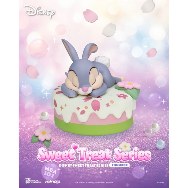 桑普 (Thumper)翹著標誌性垂耳、露出可愛兔尾,安心睡在蛋糕上,模樣純真療癒。