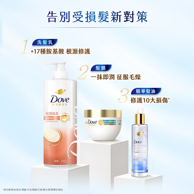 黃金比例配方 質地不黏膩 一抹逆時修護 無懼秀髮十大損傷