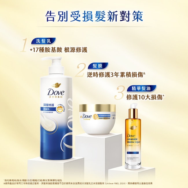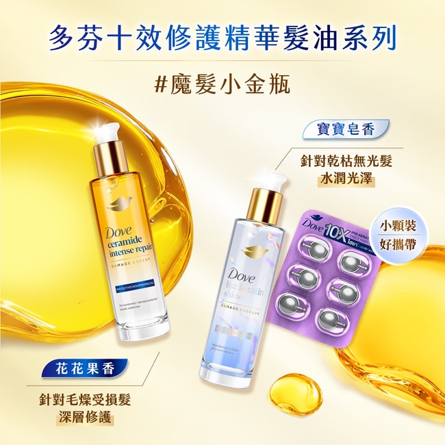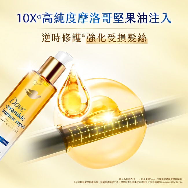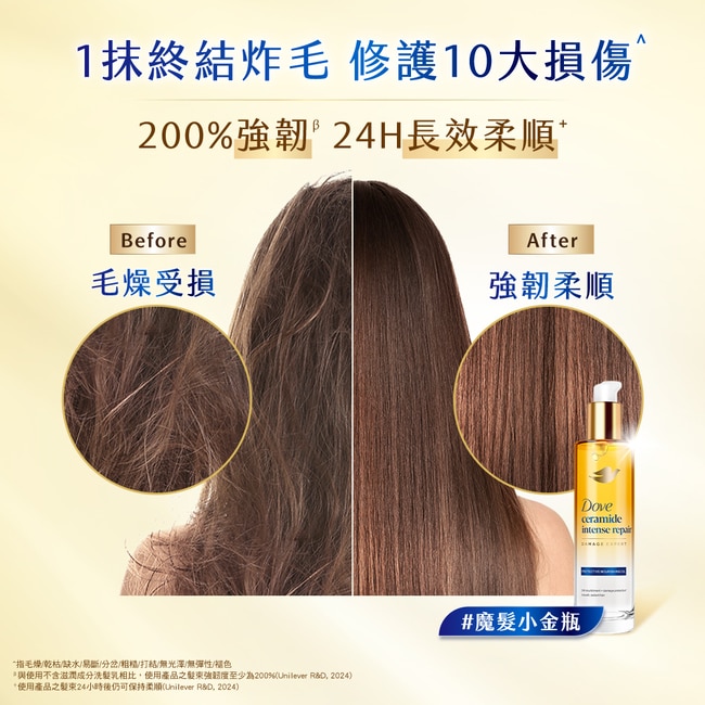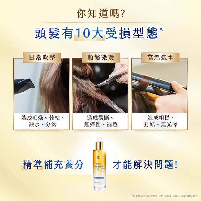 黃金比例配方,質地0黏膩,一抹逆時修護,無懼秀髮10大損傷