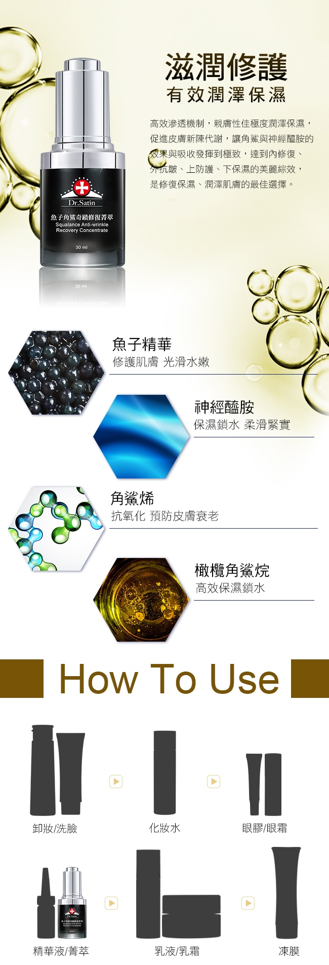 | 商品簡述 | 內修復、外抗皺、上防護、下 保濕的美麗綜效是修復保濕、潤澤肌膚的最佳選擇。 |