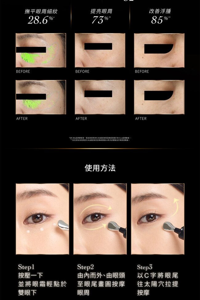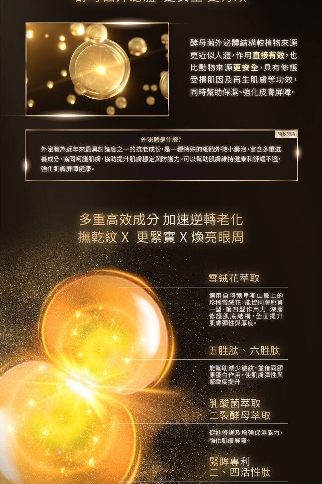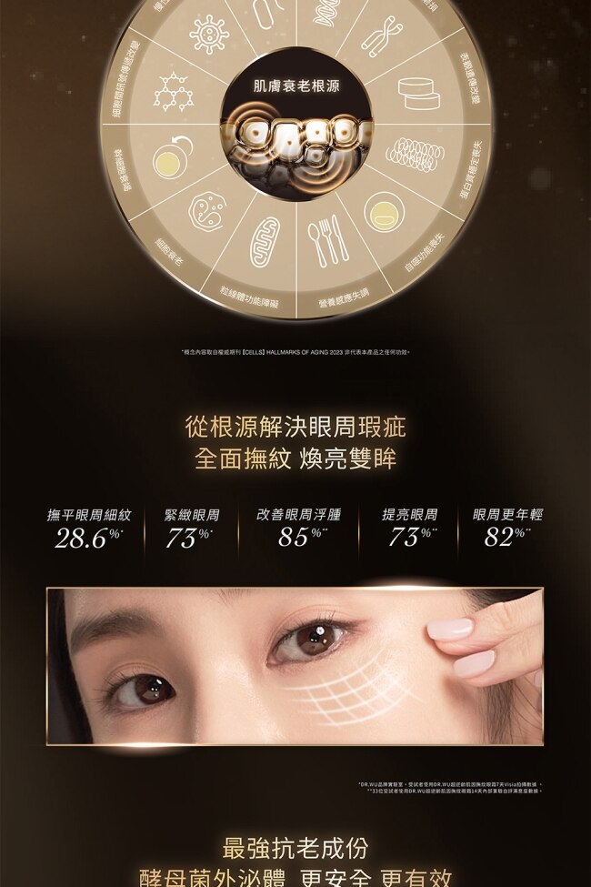 | 商品簡述 | 針對眼周皺紋、細紋、暗沉、浮腫、鬆弛設計的全能抗老眼霜。 |