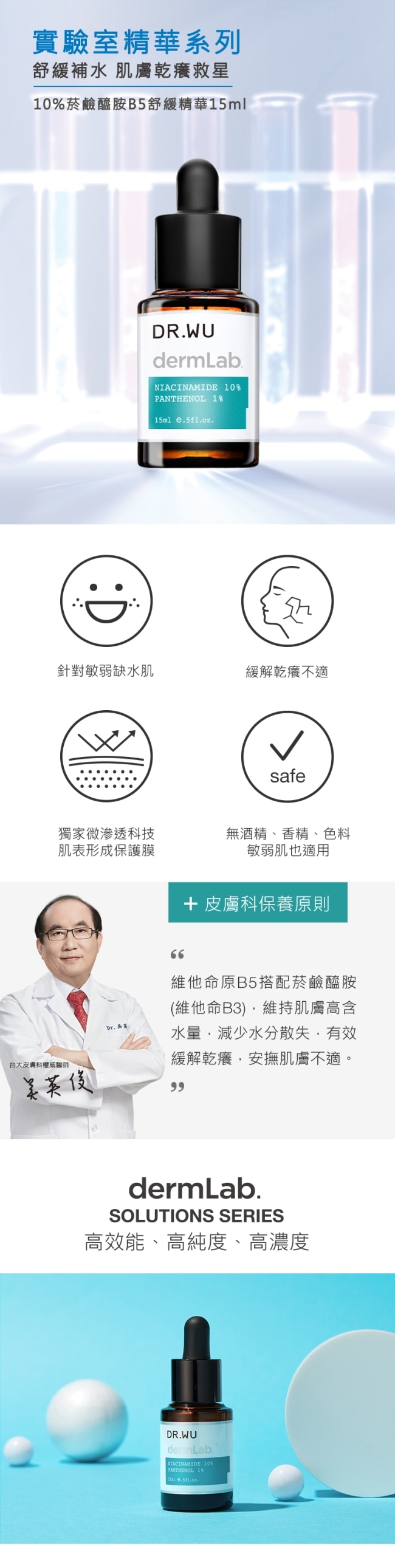 實驗室精華系列模擬醫師配方概念嚴選各種高效能、高純度、高濃度成分調製完美比例、滴滴極效的成分精華。
