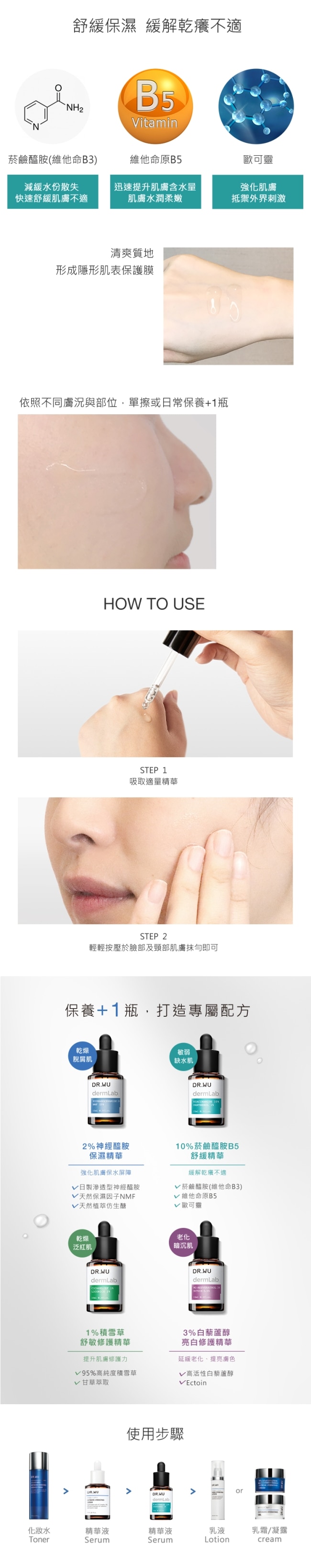 再搭配維生素原B5鎖住表層水分修護屏障緩解乾癢不適。