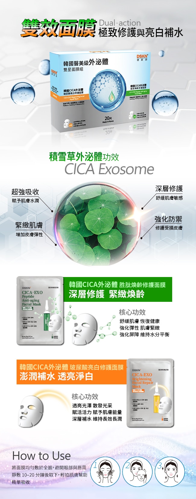| 中文品名 | 【DSKN 德斯研】韓國醫美級外泌體雙星面膜組20入 |