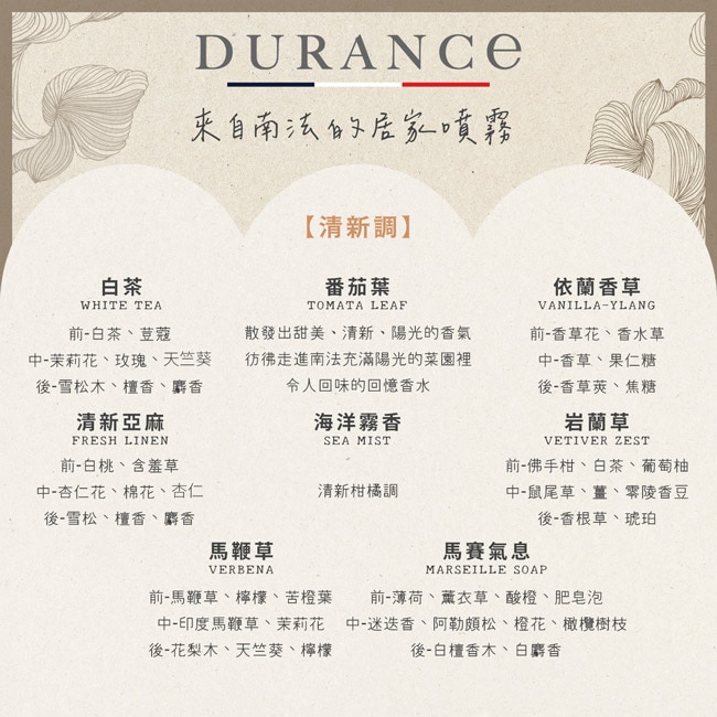 中文品名DURANCE朵昂思 薰衣草大地居家香氛噴霧(100ml)