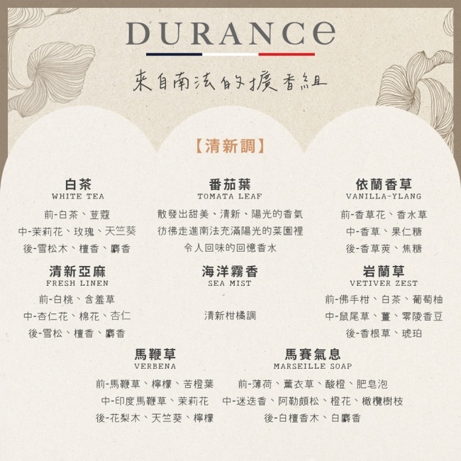| 商品簡述 | 法國知名香氛品牌 嚴選在地天然材料 嗅覺的室內設計師 增添室內芳香 提升居家生活品質 |