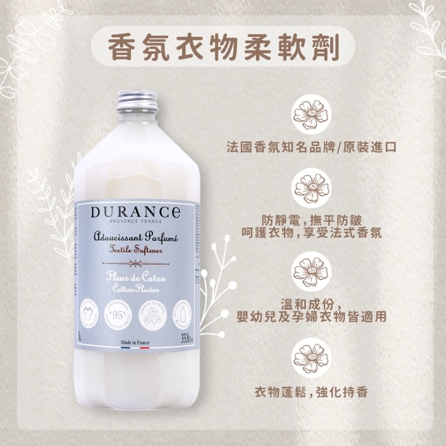 中文品名DURANCE 朵昂思 清爽整理衣物煥新組(棉花田柔軟精500ml+虞美人香封10g)-專櫃公司貨