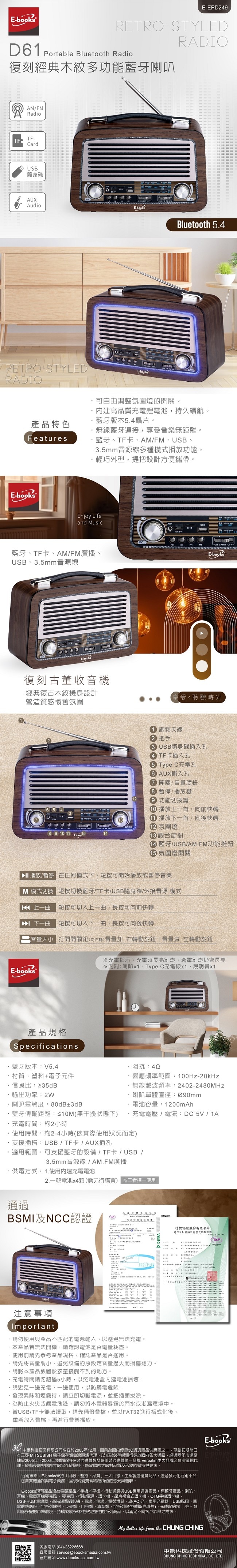 E-books D61 復刻經典木紋多功能藍牙喇叭