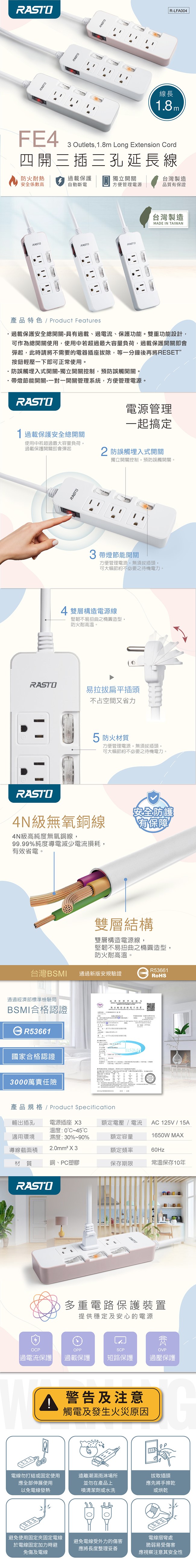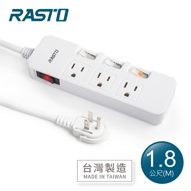 RASTO FE4 四開三插三孔延長線 1.8M