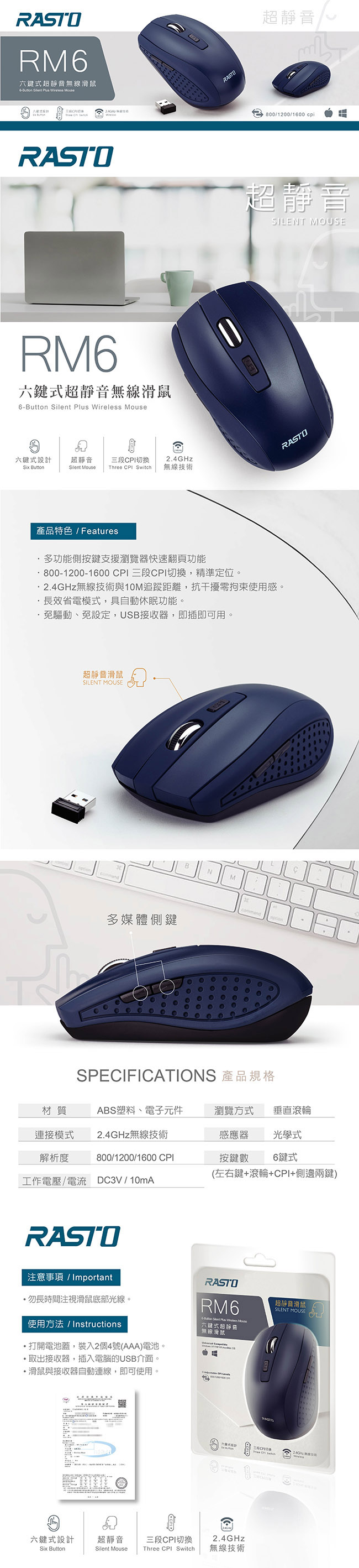 RASTO RM6 六鍵式超靜音無線滑鼠