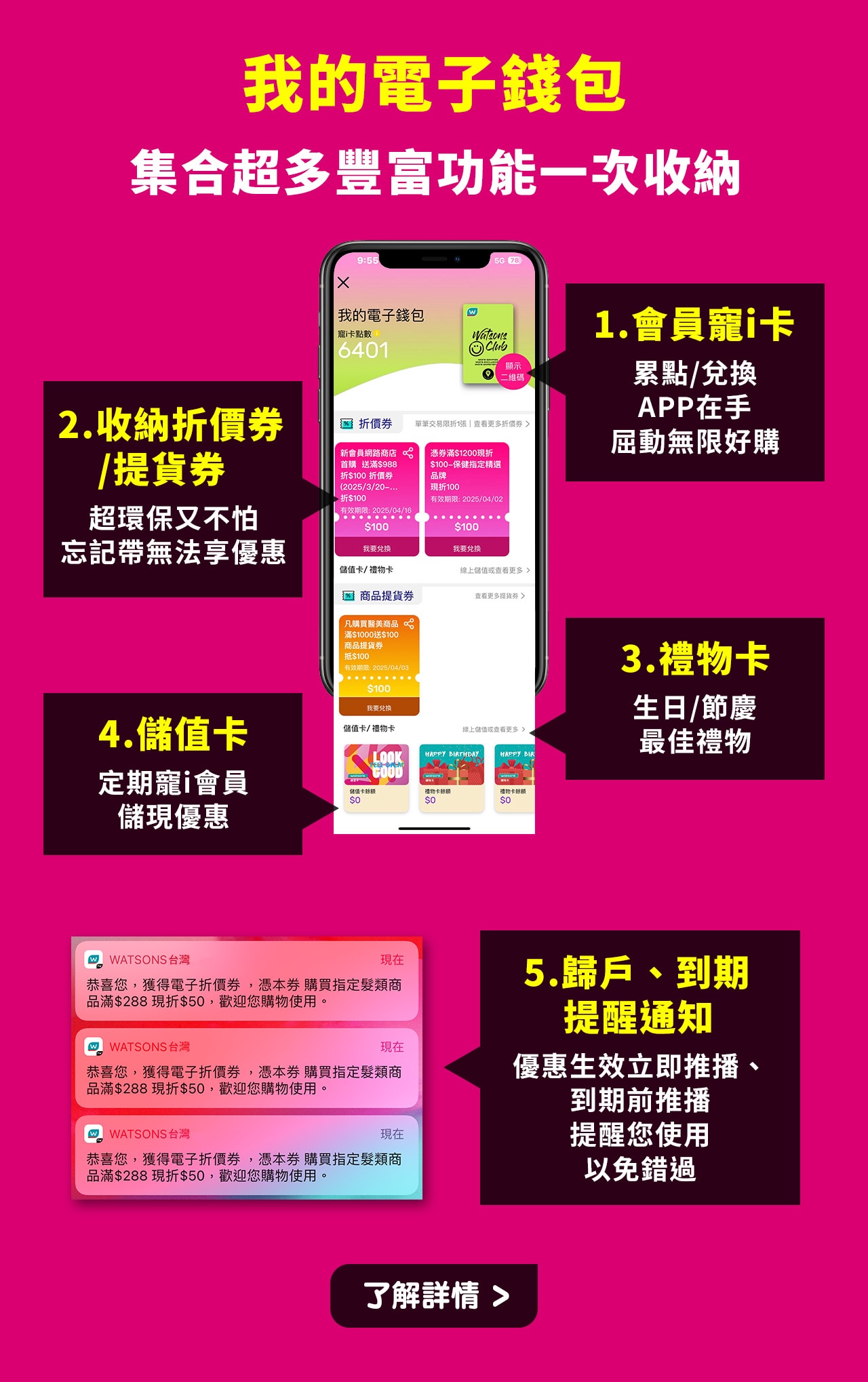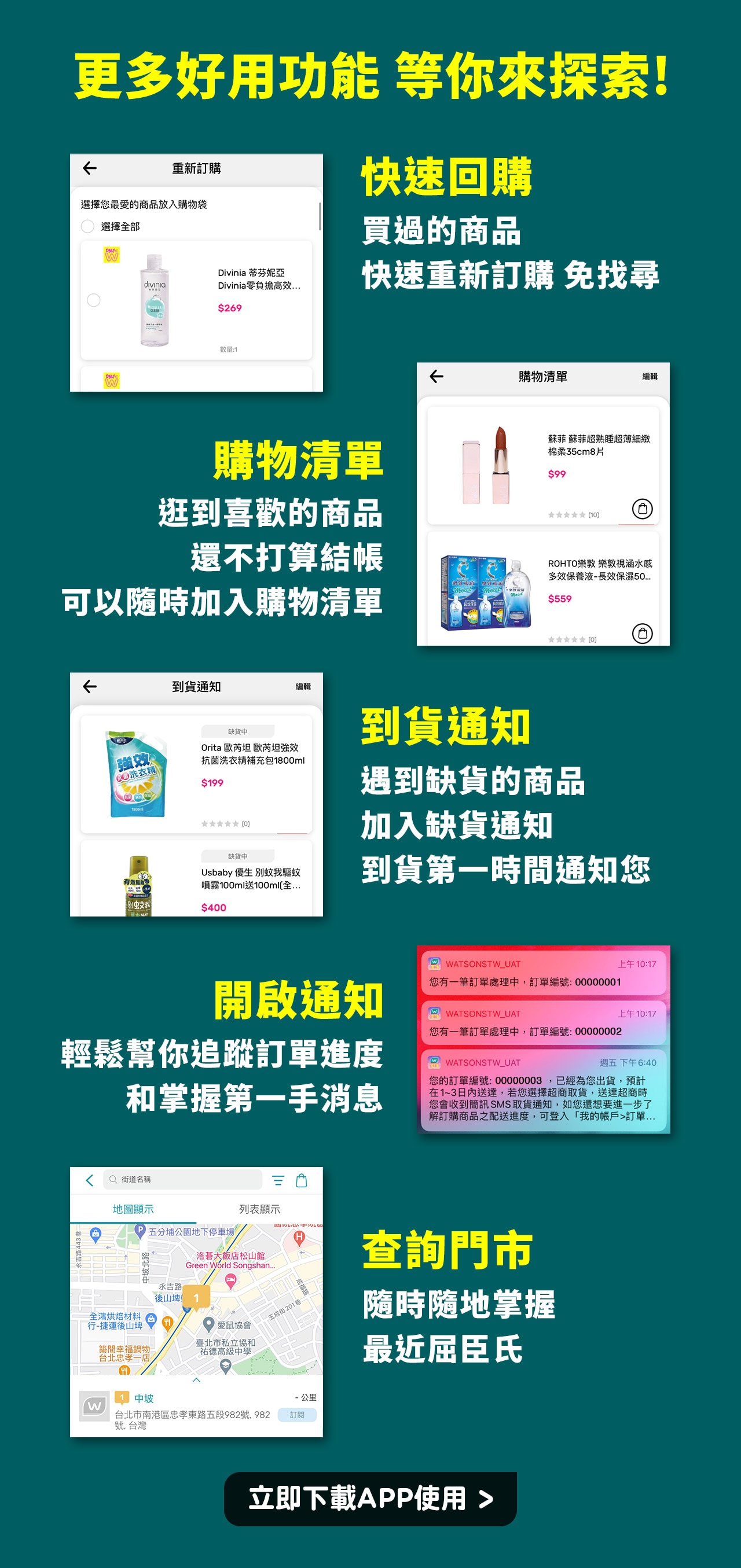 ※活動辦法: 首次於屈臣氏網路商店/APP,消費就送$100電子折價券(每人限領取一次),再次於實體門市/屈臣氏網路商店/APP消費滿$988,即可抵用此折價券,活動期間每帳號限得一次。
