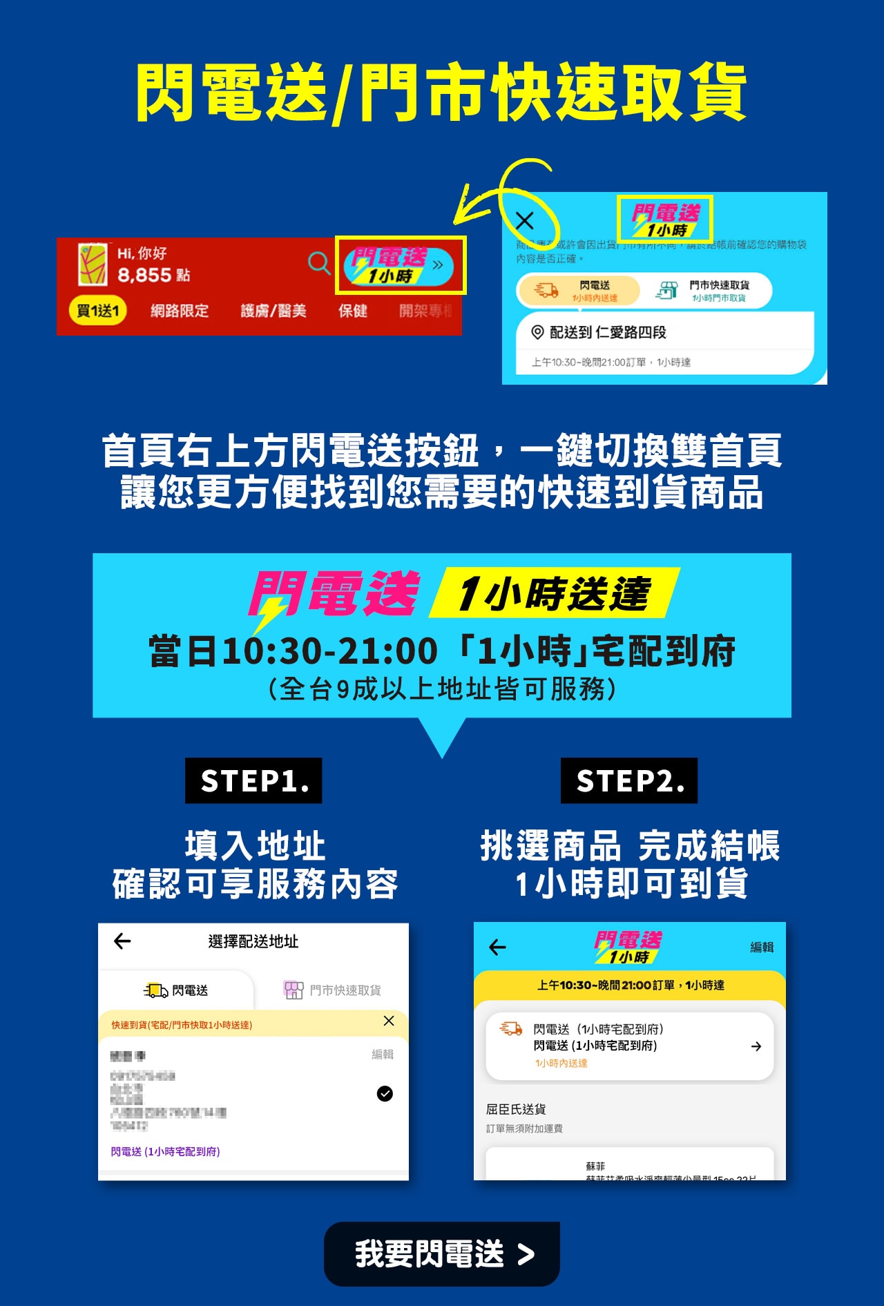 ※注意事項: 若遇商品取消或退貨,該優惠碼資格恕不退還。活動除外商品:加$1多1件、買1送1、2件5折;換購商品、箱購、廠商直送、專案特談套組;藥品專案價、會員驚爆價、數位印花/集點商品、預購商品;開架彩妝、專櫃、香水、嬰兒尿布、奶粉、隱形眼鏡、抽取式衛生紙、廚房紙巾、成人紙尿褲;合利他命、維骨力、若元錠(WAKAMOTO)、紐力活、循利寧、亞培、娘家、德國百靈油、老協珍、晶亮保、淨脈舒、補體素、太陽星;CeraVe、ALLIE、Truu童、理膚寶水、re'dermx瑞德膚、Ulike、SUISAI;鳳梨酥,以上活動及商品恕不列入滿額計算。