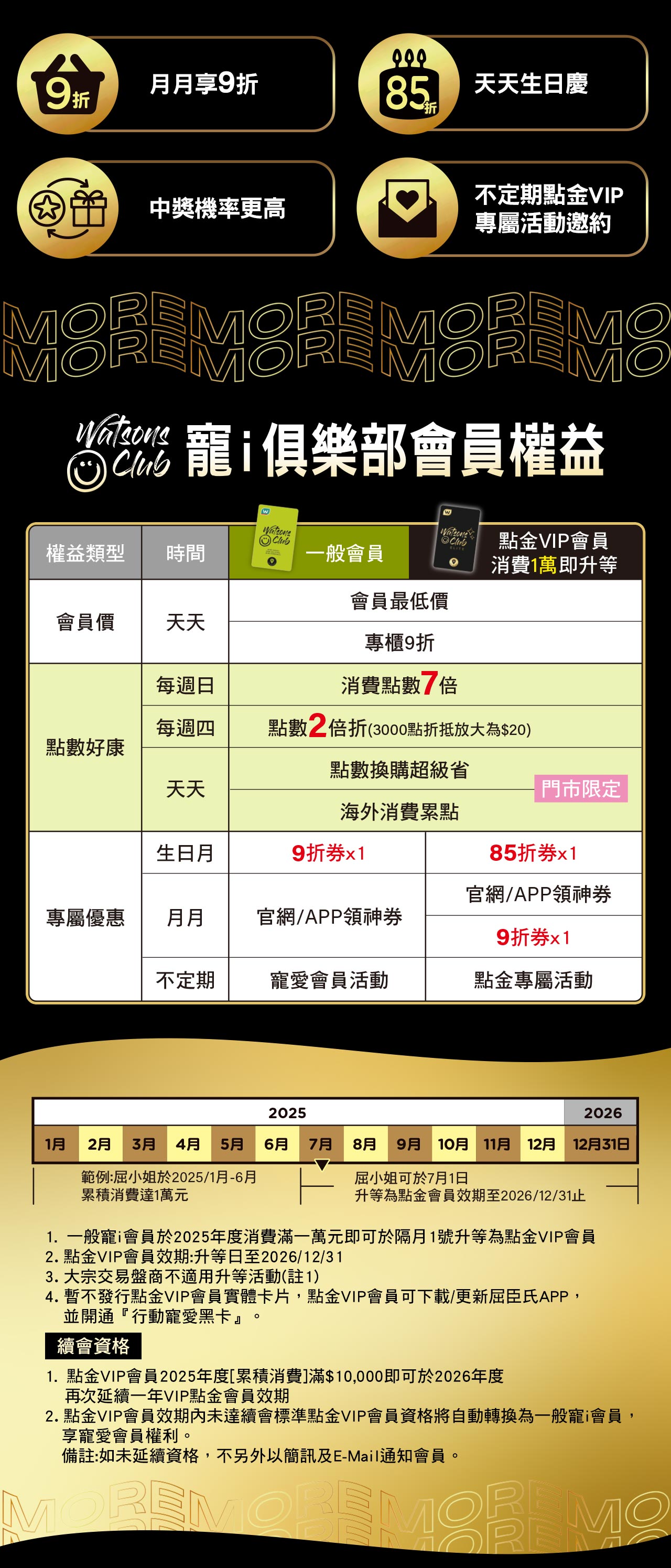 ● 升等禮遇1. 一般寵i會員年度累積消費滿NT$10,000元,即可於隔月升等為點金VIP會員,享受更多尊榮禮遇與專屬好康。輕鬆升等,讓優惠更近一步。
