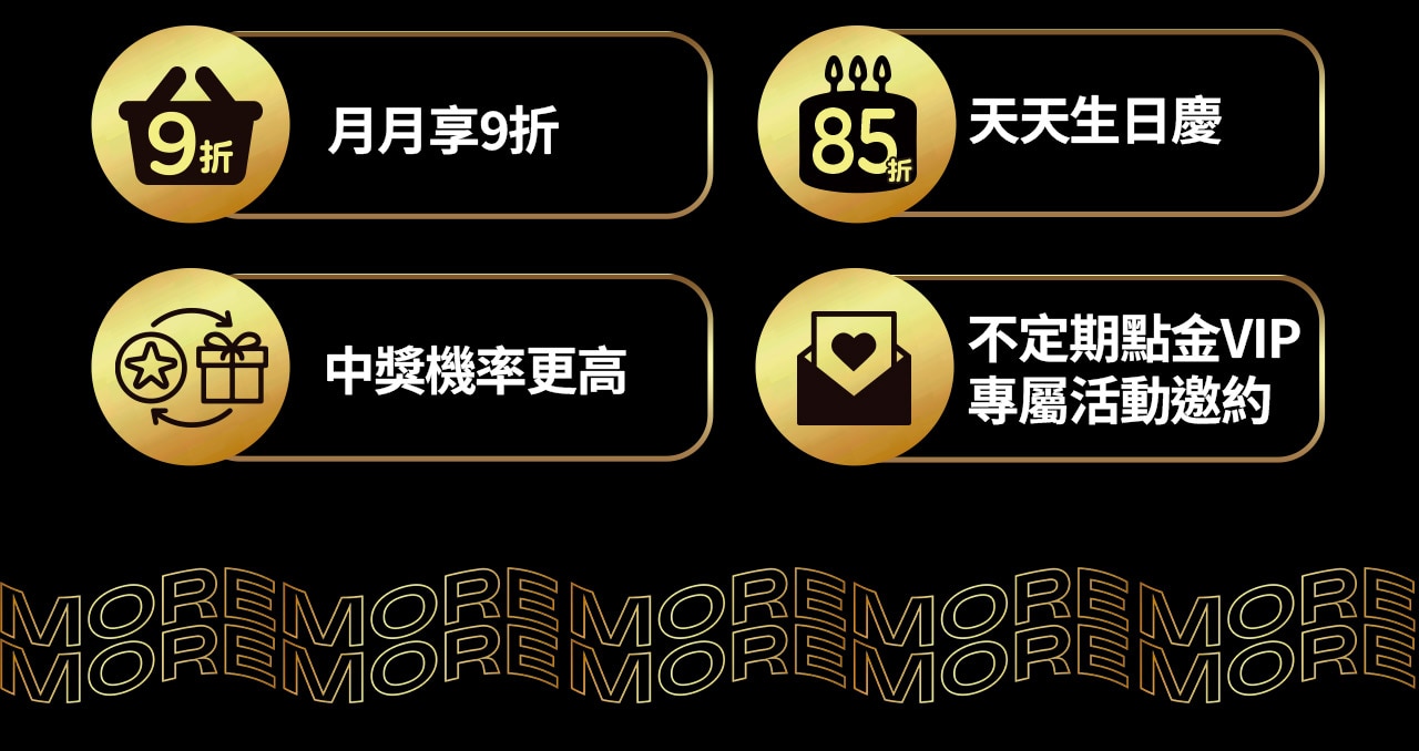 2.生日當月新升等之點金VIP會員僅限獲得9折券乙張。