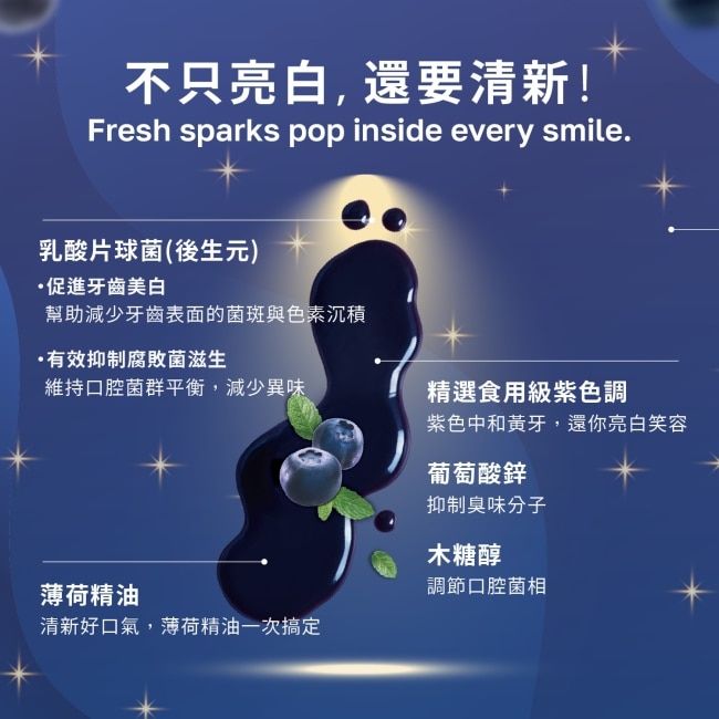為了滿足對口氣清新的極致追求,這款矯正膏更添加了乳酸片球菌、葡萄糖酸鋅與木糖醇三重淨味成分