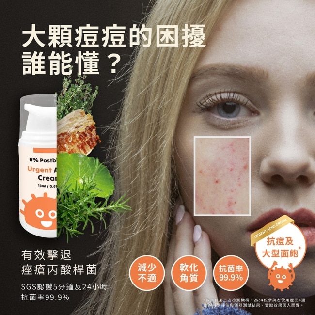 | 商品簡述 | 專為大型面皰所調配出的淨痘乳霜, 快速解決惱人的臉部瑕疵問題。 |