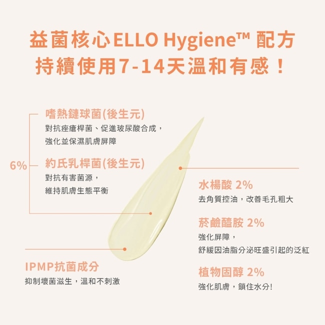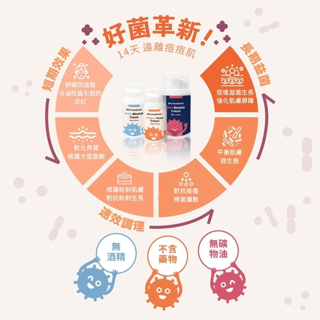 不同於傳統只求乾涸的痘霜,我們採用 6% 雙重益生菌嗜熱鏈球菌 + 約式乳桿菌,能精準打擊痘痘元兇痤瘡桿菌。長期使用不僅能安撫當下的躁動,更能像為肌膚穿上隱形防護衣,提升對環境傷害的保護力。