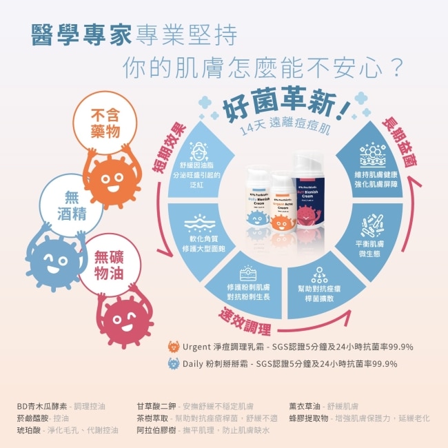 | 商品簡述 | 幫助解決惱人的粉刺問題。 透過雙重益生菌配方, 長期使用能有效提升肌膚對環境傷害的保護力。 |