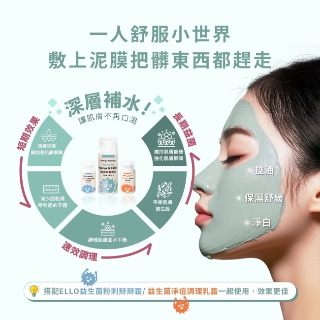 【全效舒緩水嫩】深海益生菌急救修護面膜深層補水、控油與穩定