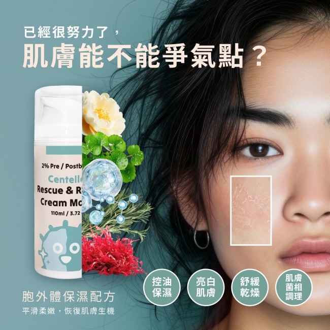 沒藥醇 + 積雪草胞外體萃取強效安撫不穩定狀態,修護受損屏障,迅速退紅並穩定膚況。
