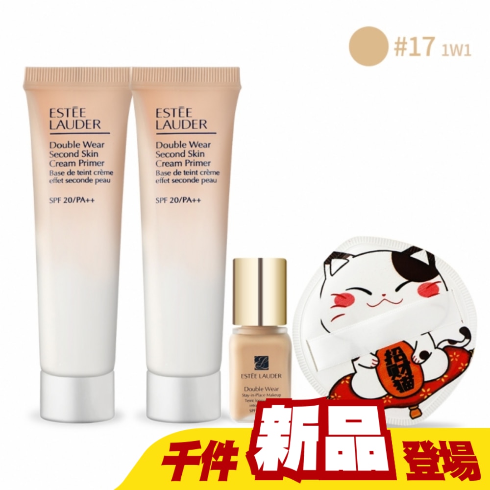 中文品名ESTEE LAUDER 雅詩蘭黛 粉持久出國美肌組[乖乖乳(15ml)x2+完美持妝粉底(7ml)1W1 ]附招財貓收納粉撲