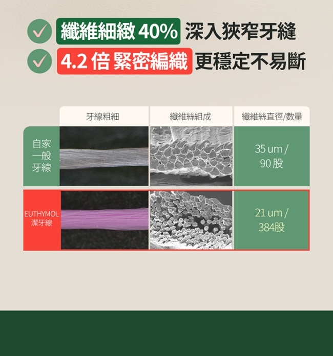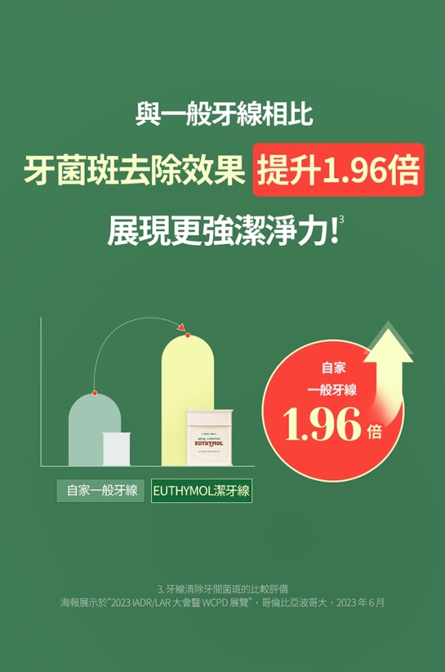 比一般牙線多1.96倍的強效牙菌斑去除力