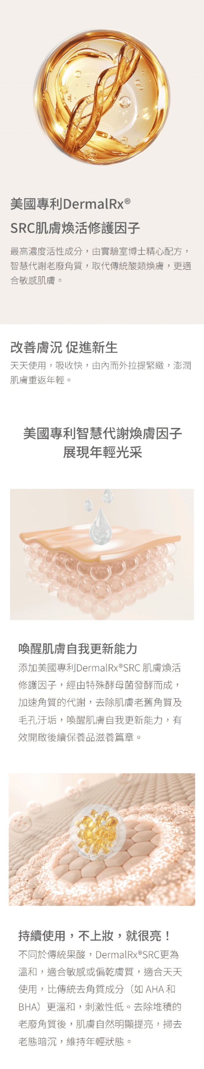 毛孔 out! 專利 DermalRx®SRC,睡一覺起來,臉變超嫩超亮,老廢角質通通掰掰。