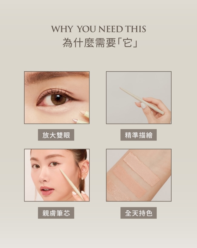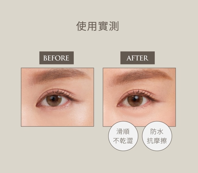 一筆滑順不結塊定色抗暈超持久完美融入肌膚自然放大雙眼。